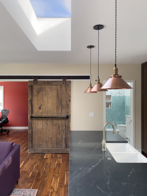 This small urban infill project in Northeast Minneapolis serves multiple functions for a family with two teenagers. The ADU serves primarily as a private home office for the homeowner, and occasionally as slumber party and guest quarters, while also providing future housing options such as short-term income property and a downsized residence. The owners are interested in sustainable design features such as maximizing natural light, and energy efficient heating and cooling systems. Siting of the dwelling unit and two-car garage maximizes the backyard and allows for an extra uncovered parking space for additional soon-to-be drivers.